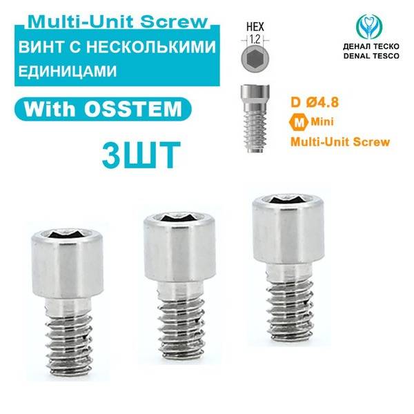 High-quality 4.8mm diameter bridge screws, compatible with Osstem Multi-Unit abutments. This pack contains three screws for secure and reliable dental implant restorations. Ideal for dental professionals requiring dependable and precise components.