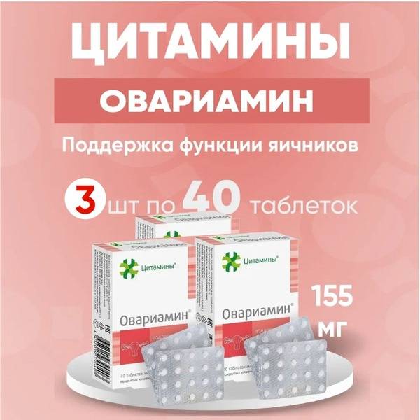 Ovariamin tablets are a natural complex containing proteins, nucleic acids, microelements, minerals, and vitamins in a readily absorbable form, making them highly nutritious and physiologically valuable. They are recommended to support female reproductive function and address various ovarian disorders and infertility. Ovariamin is indicated for a range of reproductive issues, including: depleted ovarian syndrome, ovarian dysfunction, menstrual cycle irregularities, hormonal infertility, climacteric syndrome, acute and chronic adnexitis (inflammation of the uterine appendages), and age-related involutional changes in the ovaries. Clinical studies show that Ovariamin normalizes ovarian cell metabolism, promotes follicle development and maturation, and restores menstrual and reproductive function regulation. The recommended dosage is 1-3 tablets, 2-3 times daily, 10-15 minutes before meals, for 10-15 days. Repeat the course after 3-6 months. Ovariamin has no known contraindications and can be used independently or as part of a comprehensive treatment plan.