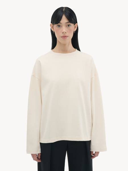 The thoughtfully designed details make all the difference: the optimal sleeve length flatters every figure, the dropped shoulder line adds a touch of effortless chic, and the durable ribbed neckline maintains its shape wash after wash. Pair it with skirts, jeans, tailored trousers – the possibilities are endless. This essential top effortlessly transitions from casual everyday wear to more polished looks.