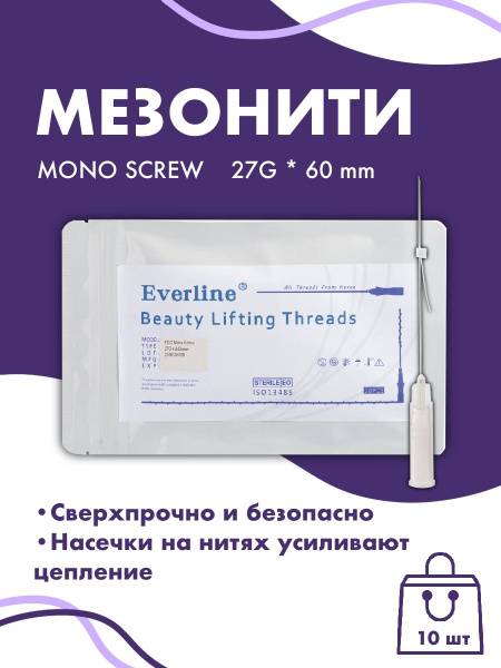INTRARICH PDO Mono Screw 27*60 is a sterile, resorbable meso-suture designed for tissue lifting using needles of various sizes. These sutures are made from polydioxanone and are intended for use in medical procedures such as contour plastic surgery.