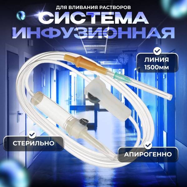This sterile infusion set, sterilized with ethylene oxide, is designed for administering infusion solutions and blood substitutes from glass bottles and plastic containers. It's suitable for intravenous fluid and medication delivery in humans and animals. Used in hospitals and medical facilities, the set features a plastic spike, a 3-hole, 35mm+ ABS (Acrylonitrile Butadiene Styrene) cannula, a 50mm transparent drip chamber with a 13mm+ nylon filter preventing bacterial contamination, a 150±5cm flexible tube, a latex injection port for bolus injections, a roller clamp for precise flow rate control (20 drops = 1ml), and a 21G x 1½ (0.8x40mm) atraumatic injection needle. The integrated membrane air vent (glass fiber) prevents microparticle emboli in the lungs.