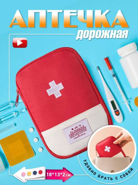A compact organizing pouch for storing tablets and medical essentials, suitable for home use, travel, and outdoor activities. The medical cross embroidery adds a recognizable symbol for quick identification.