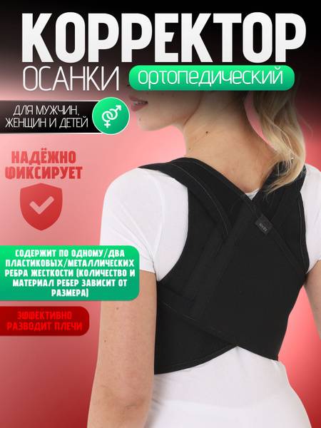 The Krait B-505 posture corrector is an orthopedic support designed to help improve and maintain proper posture. It provides structured support to the upper back and chest area, assisting in the correction of posture-related issues and offering stability to the thoracic spine.