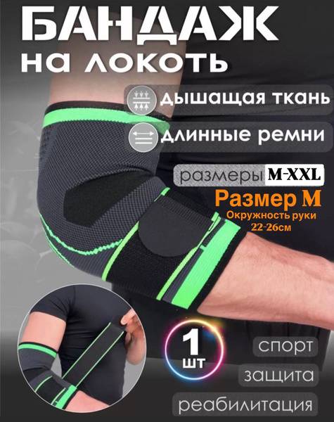 - One elbow brace size M in dark gray, green, or black.