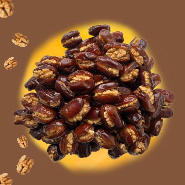 Dream Fruit Dates with Walnuts Premium is a dried fruit blend featuring whole dates and walnut pieces in a 400 g format. The product is dried and left unprocessed, retaining the natural characteristics of the fruit and nut components.
