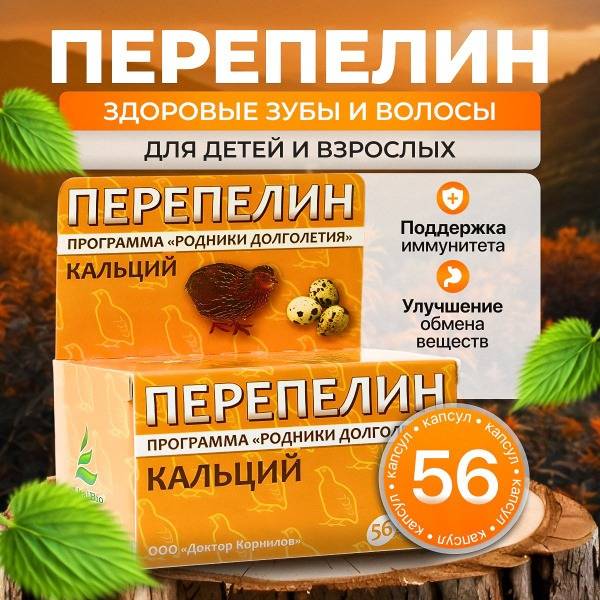 Keywords: Quail egg shell calcium, calcium supplement, bone health, osteoporosis prevention, horsetail extract, vitamin C, immune support, natural supplement, dietary supplement, Dr. Kornilov, calcium deficiency, rickets, brittle nails, hair loss, gum bleeding, constipation, irritability, sleep problems, hay fever, asthma, hives, pregnancy, bioavailable calcium, trace minerals, 56 capsules.