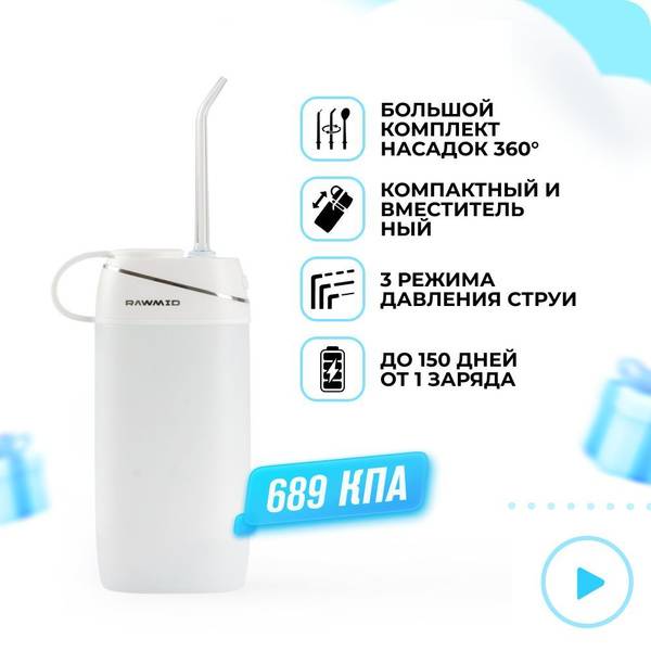 SEO Keywords: cordless oral irrigator, portable water flosser, RAWMID Portable RPI-01, waterpik, dental irrigator, travel water flosser, rechargeable water flosser, oral hygiene, gum health, periodontal care, teeth cleaning, IPX7 waterproof, magnetic charging, 3 modes, 4 nozzles, sensitive gums, tongue cleaner, orthodontic nozzle, best water flosser, Russian Stomatological Association approved.