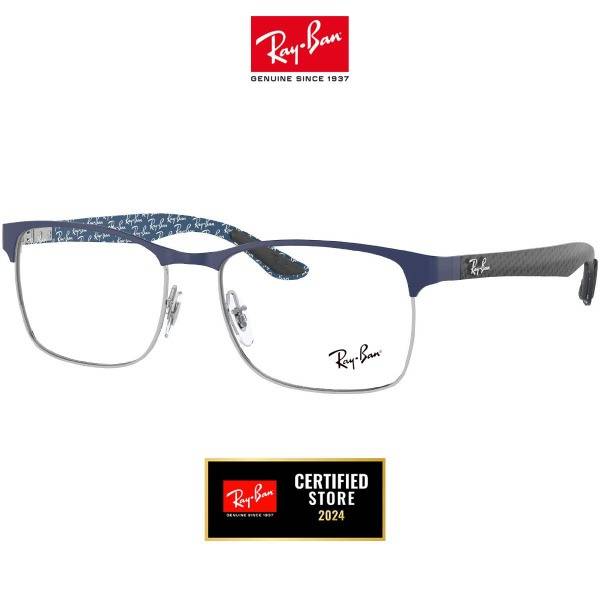 Experience lightweight luxury with the Ray-Ban RX8416 3016 eyeglasses. These stylish frames feature a sleek gunmetal (matte dark blue) metal frame with a silver rim accent and high-tech carbon fiber temples for exceptional comfort and durability. The 55mm size (Medium) offers a versatile fit for both men and women.