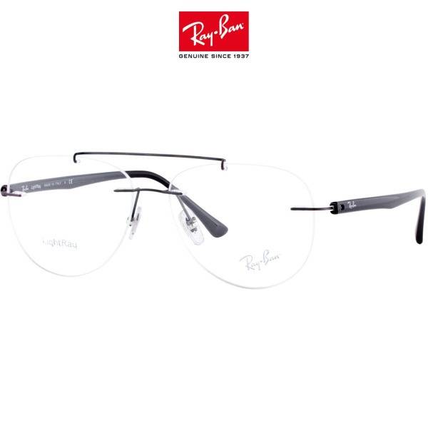 Ray-Ban RX8749, Ray-Ban LightRay, titanium eyeglasses, ultralight eyeglasses, rimless eyeglasses, teardrop frames, 54mm frames, eyeglasses for men, eyeglasses for women, prescription eyeglasses, photochromic lenses, chameleon lenses, Luxottica, Italian eyeglasses, comfortable eyeglasses, allergy-friendly eyeglasses, lightweight titanium frames, durable eyeglasses, matte dark gunmetal, PK001 plastic temples, flex mechanism, rimless design, Ray-Ban accessories.