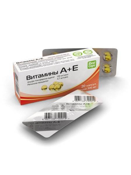 Keywords: Vitamins A & E, Vitamin A, Vitamin E, RealCaps, dietary supplement, softgels, antioxidant, immune support, reproductive health, skin health, cardiovascular health, muscle health, 300mg, 20 capsules, retinol palmitate, alpha-tocopherol acetate, biologically active additive, БАД
