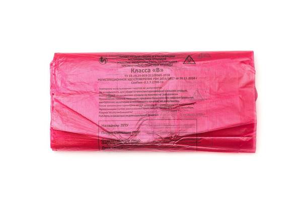 High-quality, red Class B medical waste bags, 30cm x 33cm, in packs of 100. These robust bags feature a 10-micron thick wall construction, compatible with standard waste receptacles. Embossed detailing enhances strength and durability, safely containing waste with sharp edges. Integrated print areas eliminate the need for separate labels, streamlining waste management processes and improving efficiency. Ideal for hospitals, clinics, and other healthcare facilities.