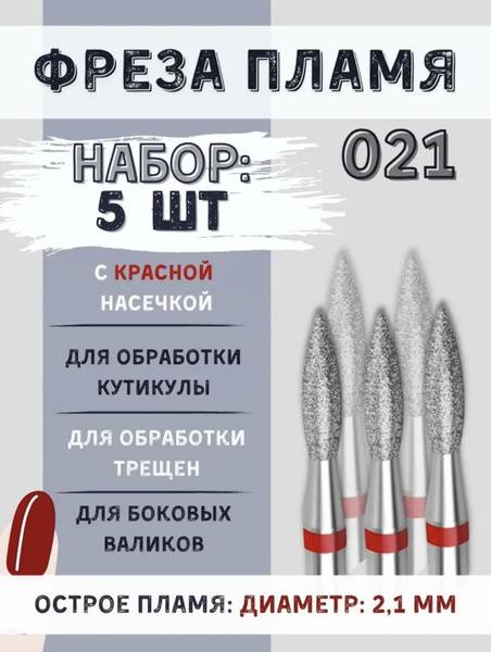 The RED FLAME diamond bit, identified by its red grit marking, signifies a medium grit hardness perfect for gentle yet effective cuticle refinement. This sharp, medium-grit flame bit is a staple for experienced technicians, enabling a comprehensive cuticle and sidewall treatment with a single, safe, and non-traumatic tool. Its 2.1mm size is universally convenient, allowing for a multitude of precise manipulations on the nail plate and surrounding skin.