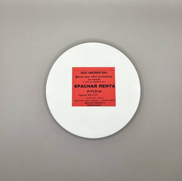 Description: These ashless filter papers (15cm diameter, red ribbon) are ideal for precise qualitative and quantitative analyses in research and educational laboratories. Specifically designed for separating curdy and large-crystal precipitates from solutions, they effectively retain precipitates such as lead sulfate. Ensure accurate results in your experiments with our high-quality ashless filters.