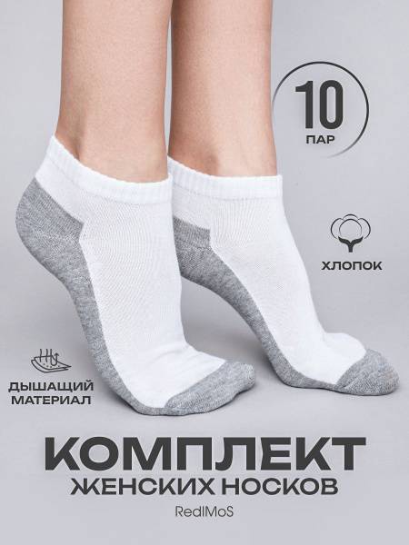 Description: Experience everyday comfort with the RedlMos 10-Pair Women's Low-Cut Sock Set. This pack features a mix of white and grey socks crafted from high-quality, breathable cotton. The soft, moisture-wicking material ensures all-day comfort and keeps your feet feeling fresh. Elasticity provides a snug, non-slip fit that stays in place without restriction. Invest in lasting comfort with this essential 10-pack of women's low-cut socks, featuring a grey reinforced sole for added durability. Choose RedlMos for quality and comfort.