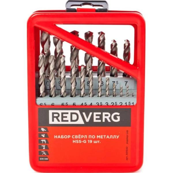 High-quality REDVERG 19-piece HSS-G metal drill bit set, covering sizes from 1mm to 10mm. Ideal for precision drilling in various metals. Durable, long-lasting, and perfect for professionals and DIY enthusiasts. Order your set today! (Product code: 501042)