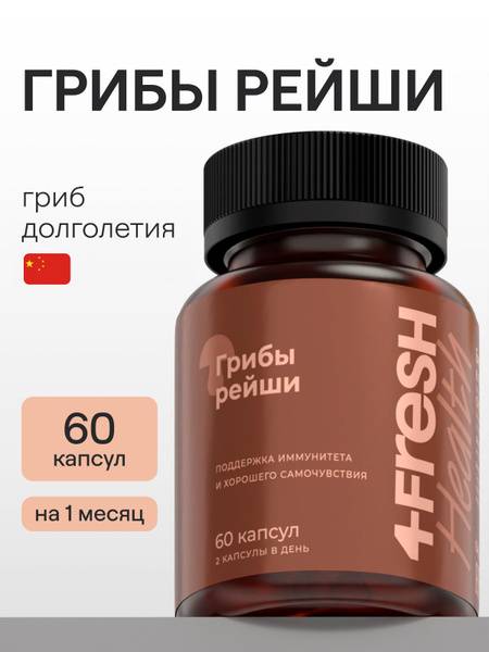 Boost your immunity, stabilize your mood, and enjoy powerful antioxidant support with 4FRESH HEALTH Reishi Mushroom capsules. Used for thousands of years in Eastern medicine to promote health and longevity, Reishi mushrooms are rich in potent polysaccharides and ganoderic acids, offering comprehensive antioxidant protection. This Reishi extract supports energy levels, endurance, and cardiovascular health, while contributing to liver function and healthy cholesterol levels. Packed with polysaccharides, peptides, and essential oils, 4FRESH HEALTH Reishi mushrooms promote cellular regeneration, improving skin, nails, hair, and cognitive function. Manufactured in Russia at a leading pharmaceutical facility, our supplement undergoes rigorous quality control. The dark, recyclable plastic packaging (01 PET) protects the product from light, while the child-resistant cap and sealed membrane guarantee freshness. Choose 4FRESH HEALTH for a high-quality, readily absorbable Reishi mushroom supplement. We also offer a range of vitamins and mineral complexes to support your overall well-being. Experience the targeted benefits of Reishi mushrooms—a single-ingredient supplement for enhanced health and vitality.