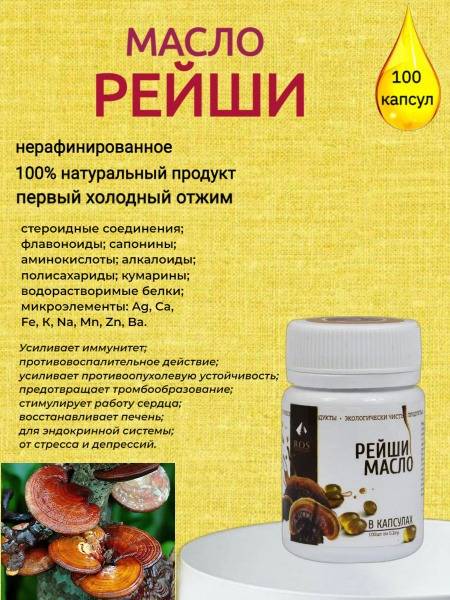 Reishi mushroom oil, Reishi capsules, immune support, antioxidant, anti-inflammatory, cardiovascular health, stress relief, cold-pressed, natural supplement, adaptogen, Siberian cedar nut oil, liver support, endocrine support, respiratory health, pain relief, blood pressure, cholesterol, blood clots, immune booster, organic, natural remedy, health supplement, holistic health.