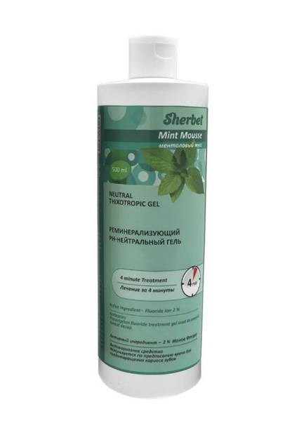 remineralizing gel, pH-neutral gel, fluoride gel, APF gel, tooth sensitivity, caries prevention, xylitol, vitamin E, mint mousse, dental gel, professional dental care, orthodontic treatment, post-whitening, allergy-friendly, 500ml, 9000 ppm fluoride, thixotropic gel, desensitizing gel.