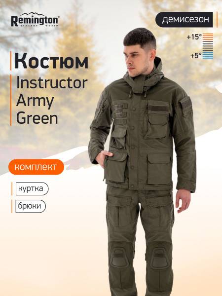 The Remington Instructor Army Green tactical suit, from the renowned American brand, offers exceptional value. Remington is the choice for those who appreciate quality without compromise. This versatile suit is perfect for tactical operations, sport shooting, and various outdoor activities during the shoulder seasons (0°C to +15°C). Crafted from a durable blend of 65% polyester and 35% cotton, it's resistant to wear and tear, stains, and offers excellent breathability. The anatomical design ensures unrestricted movement, crucial for active pursuits. The jacket features an adjustable hood, Velcro® cuffs for weather protection, and patches panels. The trousers include built-in knee pads for enhanced protection and Velcro® adjustments for a secure fit. Multiple functional pockets on both jacket and trousers provide ample storage. The Remington Instructor Army Green tactical suit is an indispensable garment for tactical enthusiasts, sport shooters, hikers, and outdoor adventurers. Size XL. Model TM1009-306.