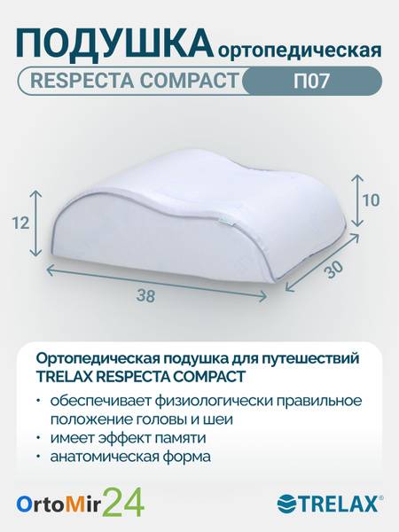 The Respecta Compact P07 Trelax orthopedic travel pillow provides unparalleled comfort and support, whether you're on a long journey or simply seeking relief at home. Designed with your well-being in mind, this pillow features two strategically sized rollers (10cm and 12cm) to perfectly cradle your neck and head. The high-quality memory foam conforms to your unique shape, providing customized support and relieving pressure points.