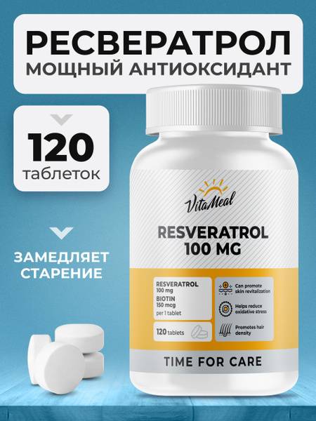 Keywords: Resveratrol, antioxidant, VitaMeal, Polygonum cuspidatum, Biotin, Vitamin B7, anti-aging, skin health, hair health, cardiovascular health, bone health, inflammation, oxidative stress, supplement, tablets, 120 tablets, 100mg, healthy aging.