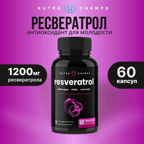 Resveratrol, Resveratrol 1200mg, Antioxidant, Anti-aging, Heart Health, Cellular Protection, Acai Berry, Green Tea Extract, Grape Seed Extract, Vitamin C, Polygonum Cuspidatum, Trans-Resveratrol, Energy, Vitality, Supplement, NutraChamps, Health Supplement, Antioxidant Supplement, Free Radical Damage, Immune Support, Cognitive Function.