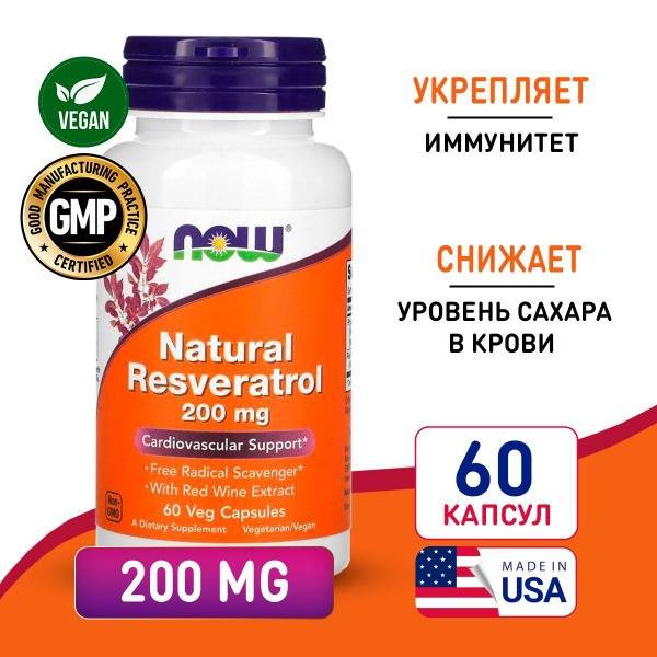 NOW Natural Resveratrol 200mg - 60 Veggie Caps - Supports Heart Health & Immunity