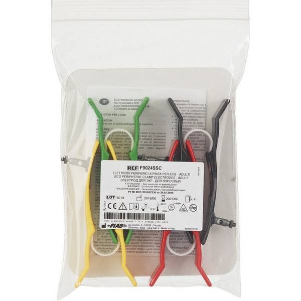 High-quality, reusable Fiab F9024/RU24-SSC peripheral ECG electrodes (4-pack) provide reliable signal transmission across all major ECG machines. Featuring a durable Ag/AgCl coating on the metal contact, these electrodes ensure clear, safe signal acquisition. The screw-type connection and push-button connector design offer compatibility with virtually any ECG machine or monitor using a standard plug or push-button connector. Latex-free and nickel-free for patient safety.