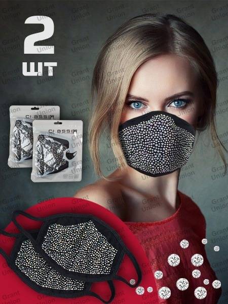 Elevate your style with our luxurious reusable cloth face masks. Each mask features sparkling rhinestones and is crafted from high-quality fabric for lasting comfort and protection. These black masks are individually packaged (2-pack) and recommended for hand washing in warm, soapy water. A perfect accessory for you or a loved one.