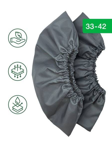 Durable and reusable fabric shoe covers with waterproof coating, perfect for sizes 33-42 (US Women's 4-12, US Men's 2-10.5, approximate). Features include a convenient storage pouch and a 39cm bottom length (standard medical overshoe size). Maintain waterproof protection by following care instructions. These Nesu overshoes offer superior protection and reusability compared to disposable alternatives.