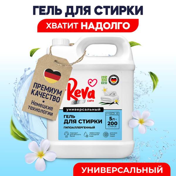 Description: Experience German quality with Reva Care's 5-liter concentrated laundry gel. Our powerful, eco-friendly formula gently cleanses and cares for your clothes, textiles, and linens, effectively removing even stubborn stains. This large 5-liter bottle provides exceptional value and long-lasting use, significantly reducing the frequency of laundry detergent purchases. Ideal for both machine and hand washing, including pre-soaking, Reva Care's optimally concentrated gel offers superior cleaning power with a smooth, easy-to-use consistency. Discover the Reva Care difference.