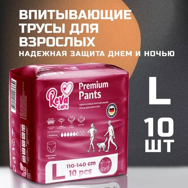 Description: Reva Care adult diaper briefs provide superior comfort and protection for active individuals and those with limited mobility experiencing moderate to heavy incontinence. Made with eco-friendly materials, these hypoallergenic diapers are free from chemical bleaches and perfumes, and dermatologically tested for sensitive skin. The advanced absorption system neutralizes odors, maintains skin pH balance, and ensures rapid absorbency. Size L (waist circumference 110-140 cm) – 10 count pack.