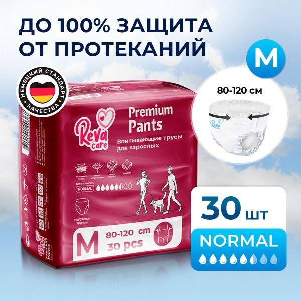 Reva Care adult diapers provide superior comfort and protection for individuals with moderate to severe incontinence. Designed for both active individuals and those with limited mobility, these breathable, hypoallergenic diapers are made with eco-friendly materials, free from chemical bleaches and fragrances. Rigorously dermatologically tested, they offer gentle care for sensitive skin. Our advanced absorption system neutralizes odors, maintains a healthy skin pH, and provides fast-wicking capabilities, ensuring dryness and confidence throughout the day. This bulk pack includes 3 packs of 10 Size M diapers (waist size 80-120cm), offering exceptional value and convenience. Adult diaper size chart