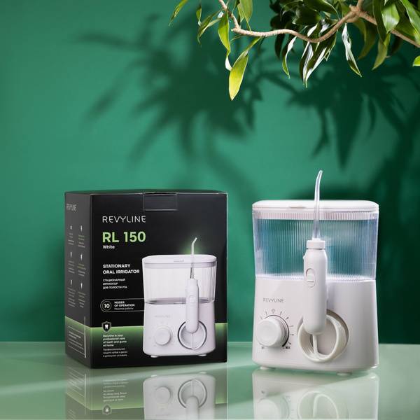 The REVYLINE RL150 White is a powerful, stationary oral irrigator perfect for the entire family. Featuring a large 600ml water reservoir, 10 pressure settings (including a gentle children's mode), 4 interchangeable nozzles, and a compact, stable design, this irrigator makes daily oral hygiene effortless. Effectively remove plaque and food particles from hard-to-reach areas, even around braces and other orthodontic appliances using the included orthodontic nozzle. Its robust stationary design boasts increased power, a spacious reservoir, and convenient nozzle storage within the lid. The suction cup feet ensure a secure grip, while the magnetic nozzle attachment makes for simple use. Control is easy with the power button on the handle and a rotating dial for pressure adjustment. Introduce your children to healthy oral habits with the gentle children's setting.
