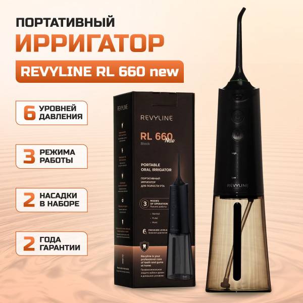 Experience superior oral hygiene with the Revyline RL660 portable water flosser. This rechargeable device offers customizable pressure settings (210-820 kPa), 360° rotating nozzles for thorough cleaning, and a convenient one-button operation. A built-in 2-minute timer ensures complete treatment, while LED illumination enhances visibility. The sleek black design is both stylish and compact, perfect for travel with its included carrying case.