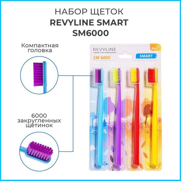 Experience superior oral hygiene with the Revyline SM6000 Smart Toothbrush 4-pack. Developed in collaboration with leading Russian dentists and based on international research, this toothbrush boasts a compact head for reaching even the most difficult areas, and an ergonomically designed handle for maximum comfort. Each brush features 6000 ultra-soft, rounded soft-medium bristles for safe and effective cleaning. The propylene handle ensures proper brushing angle and reduced pressure on teeth. This premium 4-pack provides a year's supply of superior cleaning power. Key features include: soft-medium bristle firmness, 6000 rounded bristles, compact head, ergonomic handle (16.5cm length), and head dimensions of 25x11x11mm. Upgrade your oral care routine today.
