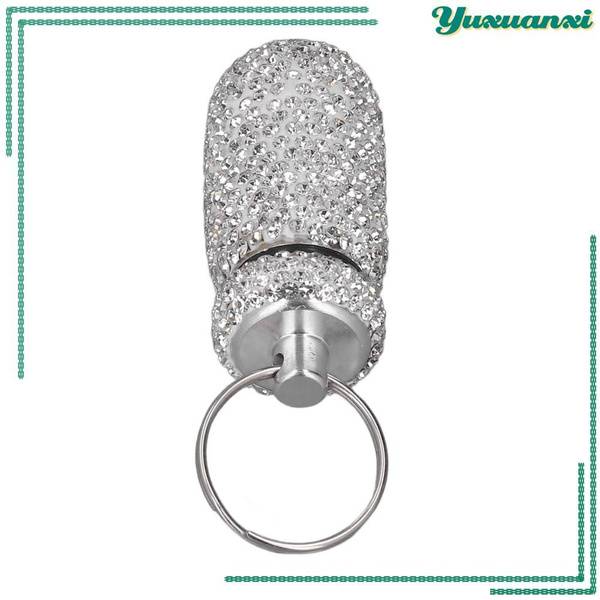 rhinestone pill case, pill organizer, medication holder, travel pill case, portable pill case, aluminum pill case, keychain pill case, waterproof pill case, airtight pill case, luxury pill case, elegant pill case, women's pill case, gift for her.