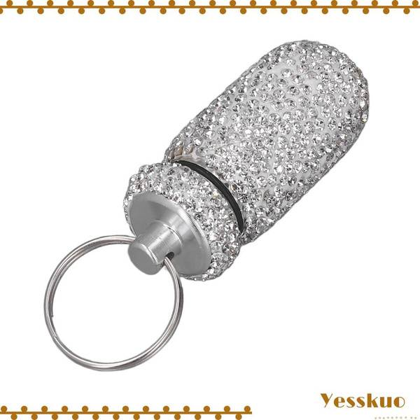 rhinestone pill case, pill organizer, medication holder, travel pill case, portable pill container, aluminum pill case, waterproof pill case, airtight pill case, key ring pill case, elegant pill case, stylish pill case, senior pill case, gift pill case, medication storage, pill dispenser.