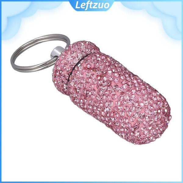 rhinestone pill case, medication holder, pill organizer, travel pill case, waterproof pill case, aluminum pill case, key ring pill case, stylish pill case, durable pill case, women's pill case, gift for her, pill container, vitamin case, supplement case