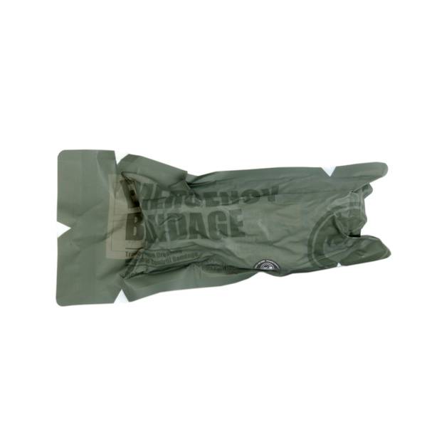 The Rhino Rescue 15cm (6-inch) Grey Compression Bandage is a professional-grade, sterile, elastic bandage designed for rapid hemorrhage control and wound dressing in tactical, emergency, and outdoor situations. This innovative hemostatic dressing features a 150cm (59-inch) high-quality elastic bandage with a built-in sterile, absorbent pad, packaged in a vacuum-sealed pouch. The unique, unidirectional stretch (length only, not width) allows for the creation of extremely tight, pressure-inducing bandages. Opposite the absorbent pad, integrated "horns" (plastic applicators) provide additional pressure to aid in hemorrhage control.