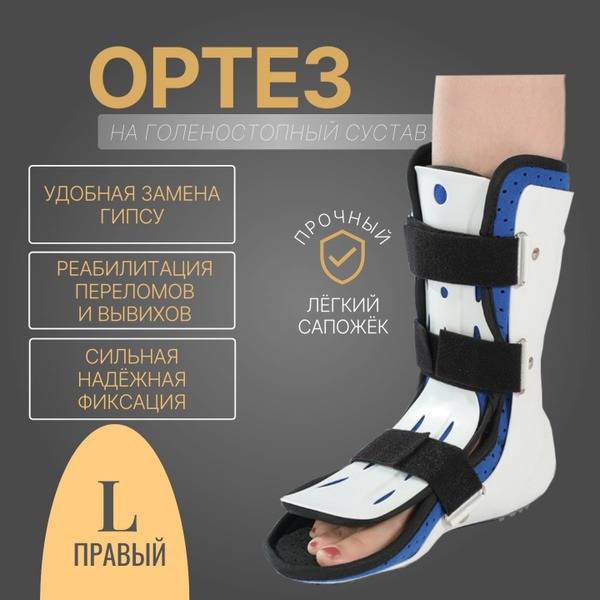 This ankle support features a non-slip rubber sole and includes a protective insert. Size L (fits shoe sizes 41-44), height 30cm. Consult your doctor before use.