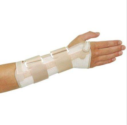 Description: This hypoallergenic, ceramic-coated rigid wrist support provides strong immobilization from the upper third of the forearm to mid-palm. Featuring removable, contoured support ribs (wider on the palmar surface, narrower on the dorsal) and two securing straps, it's a lightweight alternative to a plaster cast. Ideal for post-trauma rehabilitation (hemarthrosis, impacted fractures, tendon injuries), osteochondropathy, osteoarthritis (degenerative joint disease), tenosynovitis, styloidiitis, bursitis, and transport immobilization. Helps prevent flexion contractures and restore limb alignment.