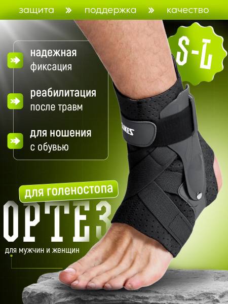 Description: Orto-Support ankle braces offer superior support and compression for injury recovery and athletic performance. This orthopedic brace provides firm fixation to the ankle joint, relieving strain on the foot and ankle. Ideal for post-operative care, reducing plantar fasciitis pain, and managing uncomplicated fractures or sprains (in place of rigid casts). The Ortho-Support's elastic design ensures a snug, comfortable fit without restricting blood flow. Innovative cross-strapping with lateral support stabilizes the ankle and heel, promoting efficient healing and recovery, particularly beneficial for athletes and post-surgery rehabilitation. The rigid 3D lateral support plates, combined with a soft upper strap, allow for comfortable flexion. This ankle brace offers excellent protection during fitness activities like running, track and field, and gymnastics. The secure, non-irritating straps provide a comfortable fit, while the easy-to-use closures allow for quick and pain-free application, even with significant inflammation. Available in size L. (Men's and Women's)
