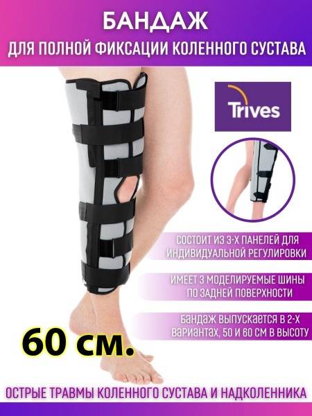 knee immobilizer, knee brace, rigid knee brace, post-surgery knee brace, knee support, fracture brace, ligament tear brace, hemarthrosis brace, knee injury brace, Trives T.44.46, T-8506, 60cm knee brace, adult knee brace, full knee immobilization, lateral stabilization, post-operative rehabilitation, post-cast rehabilitation, transport immobilization, orthopedic brace, medical brace.