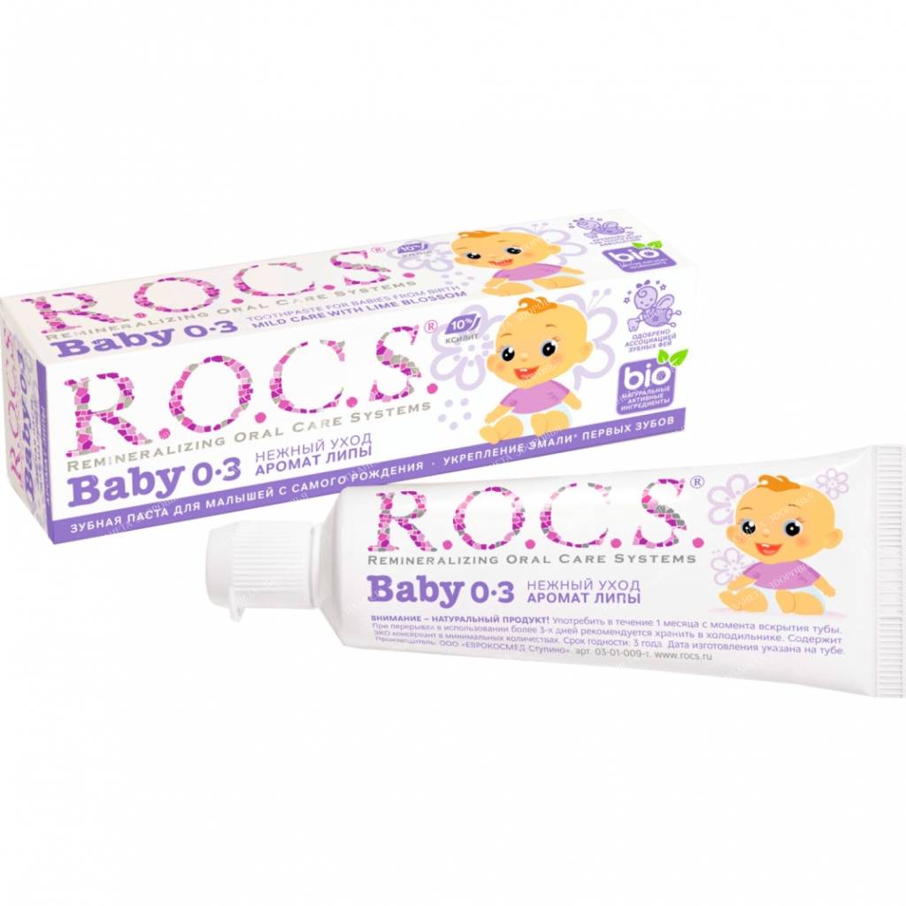 Buy ROCS Baby Toothpaste for children (0-3 years old) "Gentle care Linden flavor" 45g today and give your little one the best start for a healthy smile!