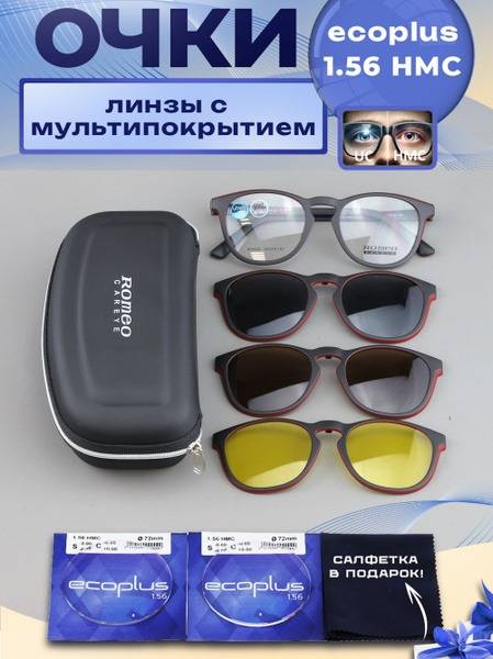 Experience superior vision and style with the Romeo 3-in-1 magnetic clip-on glasses. This sophisticated eyewear features a lightweight (20g), durable plastic frame (model R25532, color 2) and the innovative Clip-on technology for effortless lens changes. The high-precision Essilor (France) crafted frame securely holds three magnetically attached lenses: two polarized sun lenses (black and brown) and one driving lens – providing ultimate versatility for any situation.
