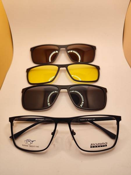 The Romeo magnetic clip-on sunglasses redefine convenience and style. Crafted for the modern man, these versatile sunglasses effortlessly transition from everyday wear to the office. The innovative magnetic design allows for quick and easy attachment and detachment of the polarized lenses, offering superior eye protection from harmful UV rays and glare. The impact-resistant frames ensure durability, making them a reliable choice for active lifestyles. Designed to flatter a wide range of face shapes, the Romeo sunglasses provide unparalleled comfort for all-day wear. Your purchase includes a protective carrying case, additional lenses, and a microfiber cleaning cloth. Experience the difference with Romeo – you'll be glad you did!