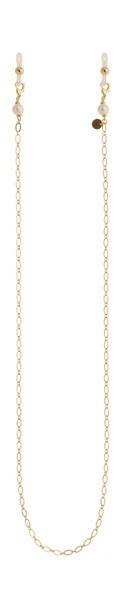 Description: Introducing the Ronda eyeglass chain, a sophisticated accessory from our Fall/Winter 2021-2022 collection. This exquisite piece features a beautifully intricate chain adorned with luminous white reconstructed pearls. Crafted from hypoallergenic jewelry alloy with gold plating, it offers both style and comfort. Wear it as a necklace or secure your eyewear – the versatile Ronda is the perfect finishing touch. Chain length: 55-57 cm. Materials: Jewelry alloy, reconstructed pearls.