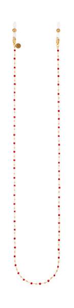 Introducing the Ronda Spring/Summer 2023 eyeglass chain, a vibrant accessory designed to add a touch of elegance and sophistication to your eyewear. This eye-catching piece features rich red Czech glass meticulously crafted onto a hypoallergenic brass alloy chain. The chain's 65mm size ensures a comfortable and secure fit for both sunglasses and prescription glasses.