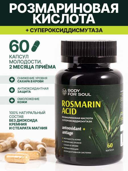 Keywords: Rosmarinic acid, antioxidant, anti-inflammatory, antiviral, anti-aging, skin health, acne, dermatitis, hair loss, weight management, arthritis, gout, endometriosis, PCOS, cardiovascular health, immune system, superoxide dismutase, glycation, free radical damage, oxidative stress.